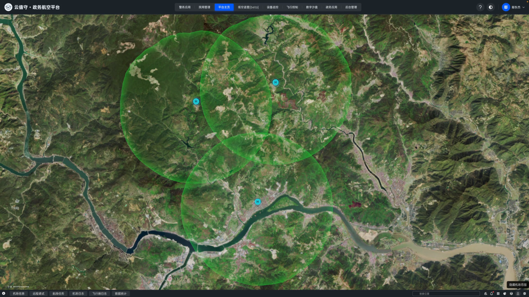大疆机场在浙江温溪的应用方案便很好地解决这一难题。温溪镇组团管委会部署了 3 套大疆机场,通过云值守·政务航空平台操控,覆盖 100 平方公里“一镇三乡”,打造了一个智能化的协同治理系统: